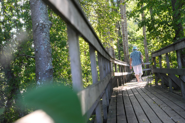 Från Pärus Fors -området leder en gångbro över till Storholmen – en två hektar stor och vacker, naturskön ö mellan forsarna.
